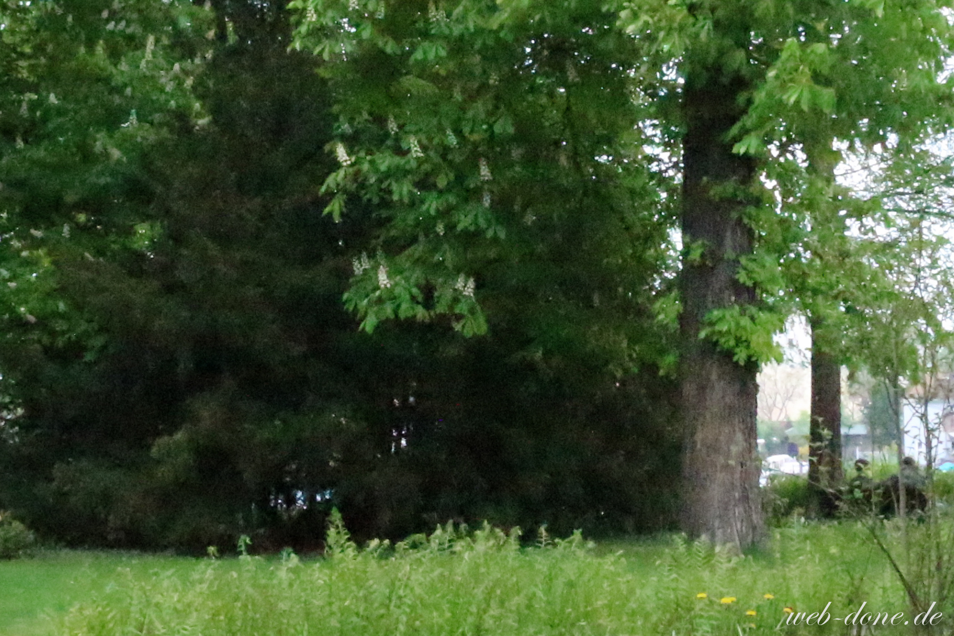 Beim fotografieren kommen leider auch die größten Nachteile zum Vorschein. Für meine Hände ist der vordere Griff leider viel zu klein. Das hat zur Folge, dass die Kamera etwas stärker wackelt. Im Vergleich liegt meine 60D viel gemütlicher und auch stabiler in der Hand. Dadurch wackelt die große EOS auch weniger. Gerade bei den Freihand-Makros die ich erstellt habe, ist das ein großes Manko. Bei weitwinkeligen Landschaftsaufnahmen oder kurzen Verschlusszeiten wirkt sich der Nachteil aber kaum auf das Bild aus. Jeder muss also für sich entscheiden, was ihm wichtiger ist. Kompakte und leichte Kamera oder bessere Griffigkeit und dadurch mitunter bessere Bildergebnisse. Für Sport- und Makrofotografen ist die 100D sicherlich nicht hergestellt worden. Reisende, Wanderer oder der Einsteiger kann jedoch sehr glücklich mit der Canon EOS 100D werden. Und damit spricht Canon ein immer größer werdendes Publikum an. Hohe Mobilität und gute Technik sind Faktoren, die dem Kunden immer wichtiger werden.Ich war heute mit der 100D unterwegs in einem Park in Berlin unterwegs. Dabei warennoch das EF-S 18-55mm IS STM Objektiv und das Tamron 60mm F 2.0 Makro Objektiv. Ich persönlich bevorzuge nicht den im Lieferumfang enthaltenen Trageriemen sondern eher Handschlaufen. Gerade bei der 100D ist es sinnvoll, möglichst kleines Zubehör zu verwenden. Deswegen habe ich eine sehr einfache Handschlaufe von Samsung benutzt. Für mein Empfinden eine optimale Sicherung. Mit dem EF-S 18-55mm wirkt die 100D sehr ausgewogen. Nicht zu kopflastig, aber trotzdem kann man es zum stabilisieren während der Aufnahme gut mit der Hand anfassen. Der Autofokus ist fast lautlos und das Auslösegeräusch ist angenehm, wie bei anderen dreistelligen Canon’s auch. Der Body lässt sich besser in der Hand zum transportieren halten, als man vermuten würde. Er erinnert mich ein wenig, an die 1000D.