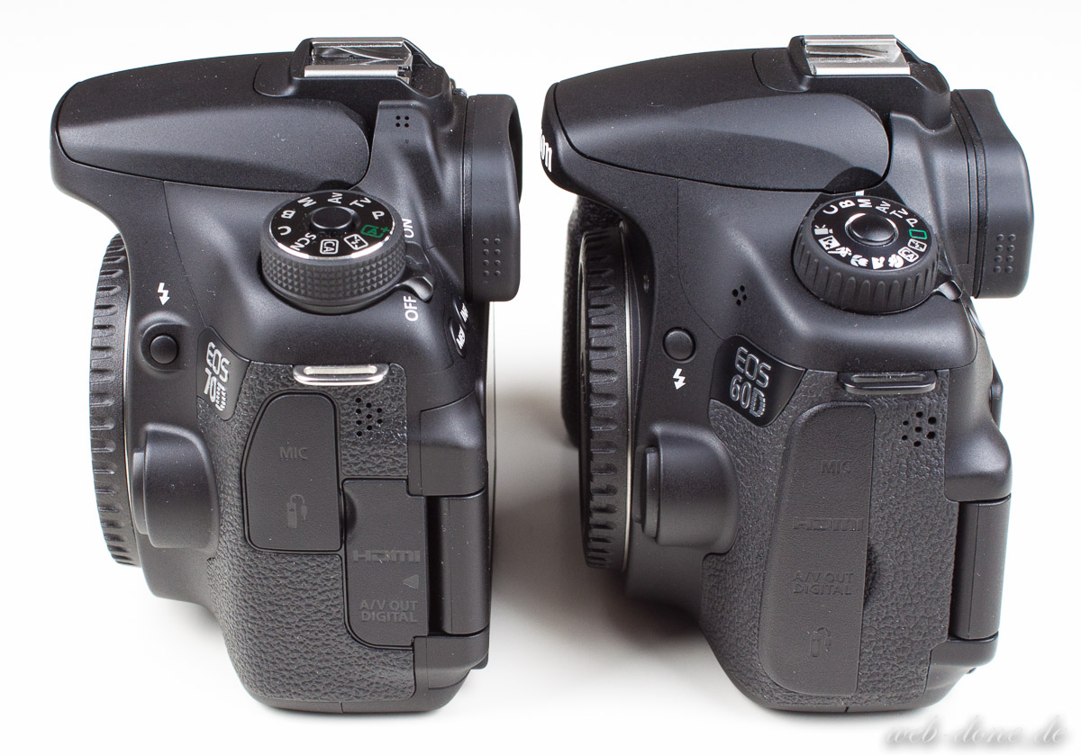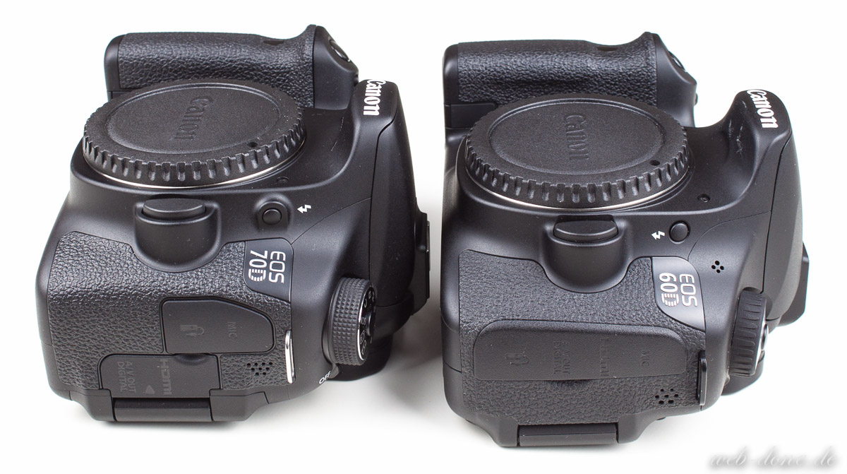 Zunächst möchte ich gerne auf die sichtbaren Unterschiede eingehen. Bereits in dem Testbericht zur Canon EOS 70D habe ich einiges zu den äußerlichen Veränderungen im Vergleich zur 60D geschrieben. Beginnen möchte ich aber mit einer visuellen Übersicht.
