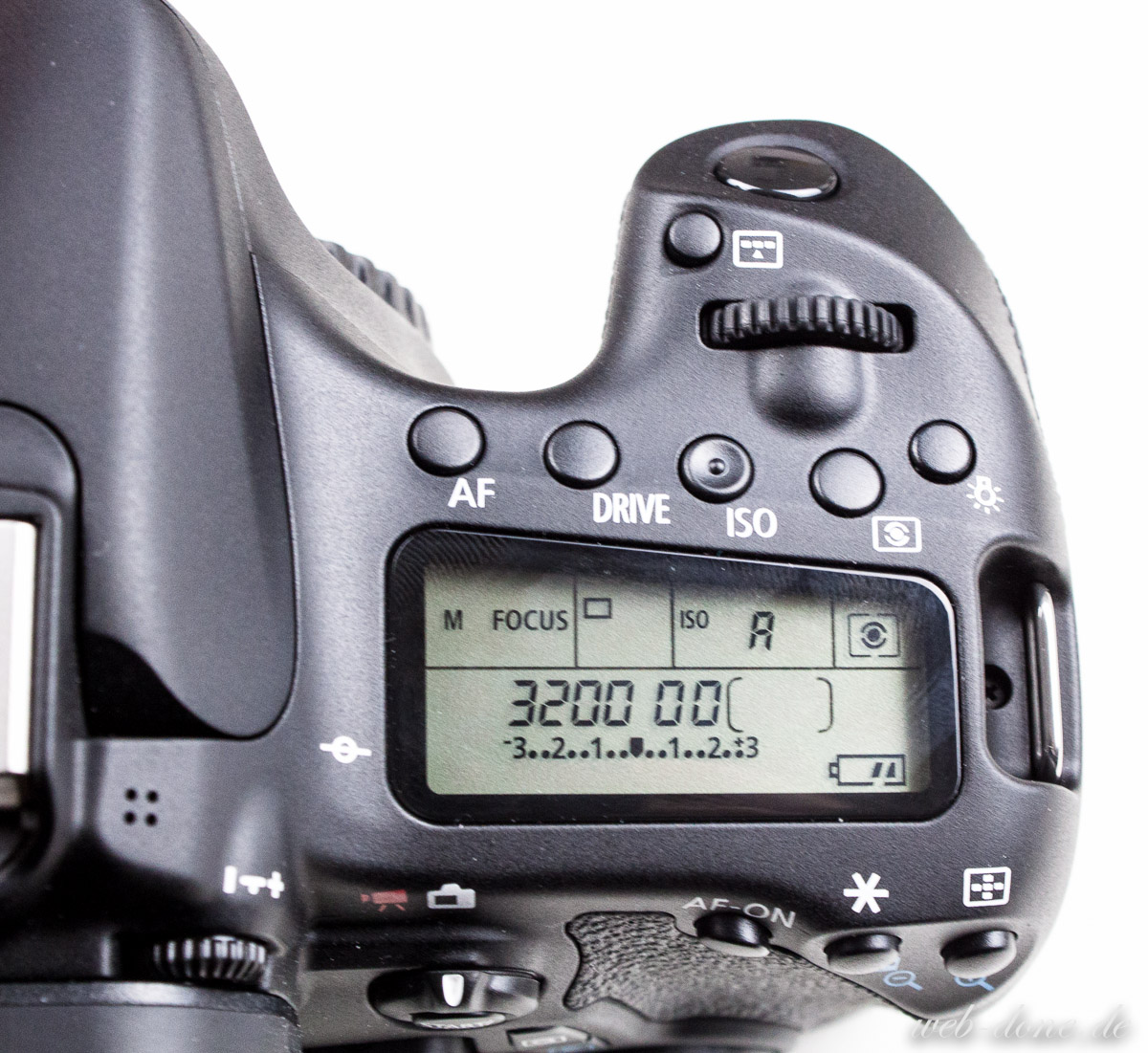 Nun zu den weiteren Merkmalen des neues Body der 70D. Der Auslöser lässt sich wie gewohnt sehr gut bedienen und ist unverändert der 60D entnommen. Das Rändelrad auf der Gehäuseoberseite wurde überarbeitet und fühlt sich nun besser und wertiger an. Zwischen Auslöser und dem Rändelrad wurde eine neue Taste verbaut, mit der man nun die neuen Modi des Autofokussystems verändern kann. Die weiteren 5-Optionstasten neben dem oberen LCD-Display blieben unverändert. Das Display besitzt nun auch noch eine Statusanzeige für das WLAN und es wurde eine hellere Displaybeleuchtung verbaut. Der Unlock-Knopf für das Schnellwahlrad wurde durch einen Lock-Schalter abgelöst. Die Mechanik des Displays blieb nahezu unverändert. Die Anschlussabdeckung der Canon 70D ist nun zweigeteilt. Mikrofoneingang und Fernauslöseranschluss haben nun eine eigene Abdeckung, sowie der HDMI- und A/V Out-Anschluss.
