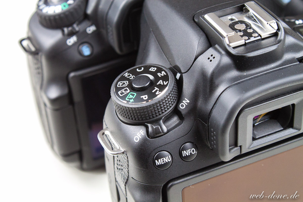 Grundsätzlich hat sich auf dem ersten Blick nicht extrem viel zwischen dem Body (Gehäuse) der 70D und der 60D getan. Viele Knöpfe und Proportionen sind unverändert. So haben sich das Gewicht und die Abmaße kaum verändert. Demnach bleibt die Handhabung im gro wie gehabt. Das neue Moduswahlrad und die versetzte Menü- und Info-Taste stellen diesbezüglich die größten Veränderungen dar. Das Moduswahlrad hat nun wesentlich weniger Optionen und die Videofunktion hat einen neuen Schalter mit der Livebild-Funktion erhalten. Die Motivprogramme sammeln sich nun an der 70D im „SCN“-Modus. Diese Neuerungen kann ich nur positiv bewerten. Für viele Nutzer einer zweistelligen Canon-DSLR sind Motivprogramme unrelevant und rücken so in den Hintergrund. Ebenso ist der Videomodus mit nur einem „Knopfdruck“ erreichbar und man muss nicht mehr das Wahlrad im ca. 270° drehen, wie es noch bei der 60D der Fall war. Hier hat Canon meiner Meinung nach alles richtig gemacht.