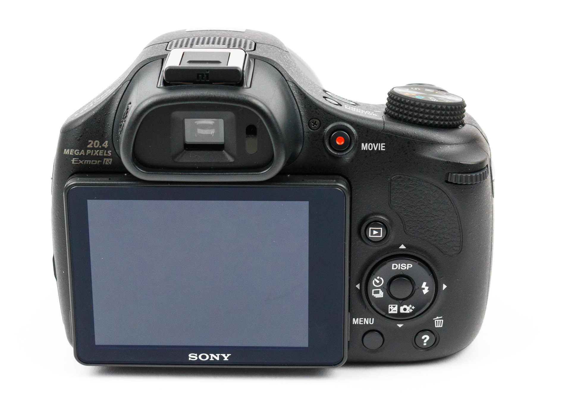 Das Gehäuse ist etwas Rau, was der Haptik sehr gut tut. Das Design ist ausgewogen, wobei es auch etwas weniger Aufschriften sein könnten. Ich weiß das meine Kamera GPS, HD, WiFi und einen 20 MP-Sensor hat. Die Verarbeitung ist gut und robust. Durchdacht ist der kleine Nippel unten am Objektiv. Dadurch steht die Kamera auf ebenen Flächen gerade und kippelt nicht nach vorne. Das Display ist neigbar, nach unten etwa um 45°, noch oben um ca. 90°. Dabei ragt es auch etwas heraus, wenn es nicht geklappt wird. Darüber ragt der Sucher noch weiter aus dem Gehäuse, den ich später aber noch verfluchen werde.