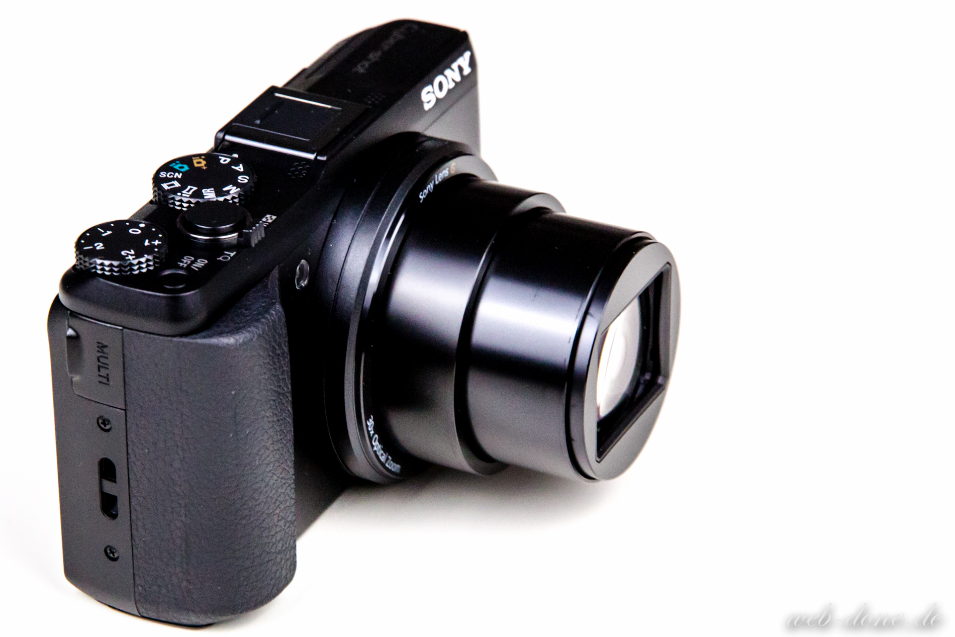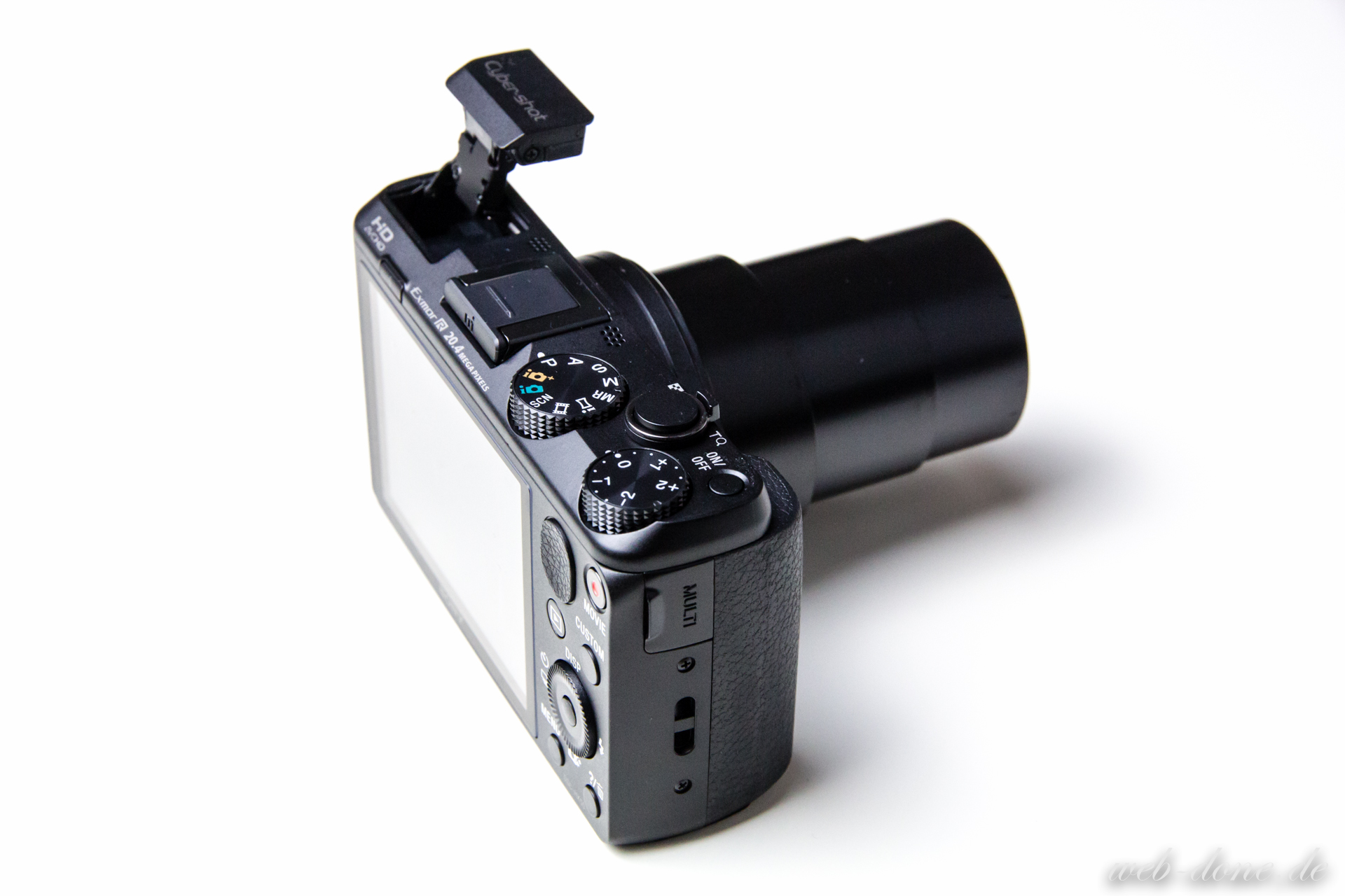 Der Ein-/ Ausschalter ist sehr klein und schwer zu erreichen. Das große Wahlrad zur Belichtungskorrektur ist zu groß. Das Funktionswahlrad ist zu tief im Gehäuse versenkt und zu schwergängig, für mich nur sehr knifflig und ungenau bedienbar. Der Auslöser ist groß, aber etwas zu wackelig. Als DSLR-Mensch muss man den elektronischen Zoom hassen. Er ist sehr grob und ungenau. Schnell befindet man sich auch im digitalen Zoombereich, den ohnehin niemand braucht. Schlimm ist es, dass die Sony nicht mal kurz stoppt, sobald die Zoombereiche überschritten werden, der Übergang zwischen optischen und digitalem Zoom ist fließend.